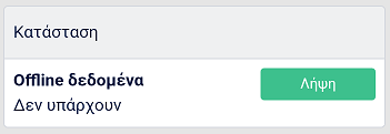 Για να μπει η εφαρμογή σε offline λειτουργία θα πρέπει να κατεβάσει τα δεδομένα από το internet. Η λήψη αυτή γίνεται είτε από το κουμπί της αρχικής οθόνης, είτε από το κουμπί Λήψη σε αυτή την οθόνη.